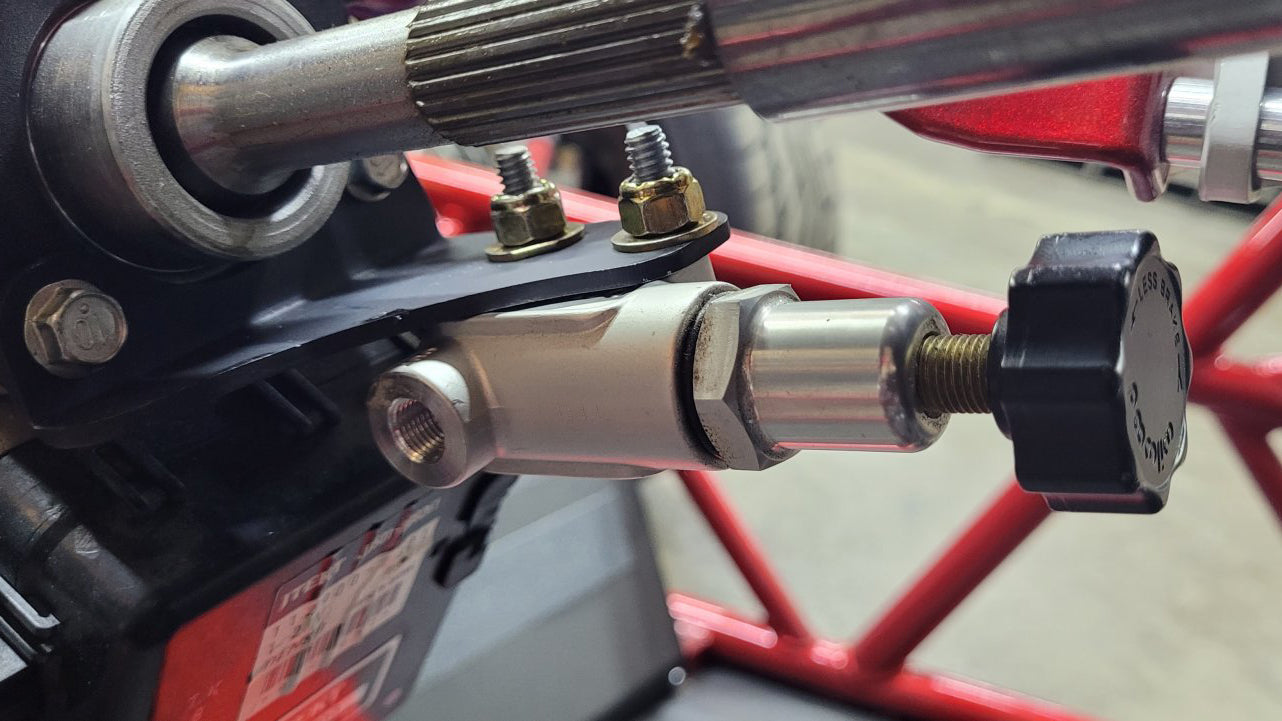 The proportioning valve allows you to balance the front to rear brake bias to improve braking performance and decrease the chance of front wheel lock-up. The improvement is more noticeable on Goblins running the DF Kit Car parking brake setup.
