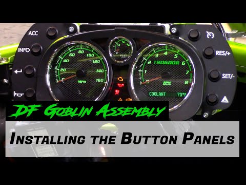 Fully assembled button panels with buttons for accessory, info, enter, horn, hazard and cruise control. The panels are powder coated black with white silk screen labels.