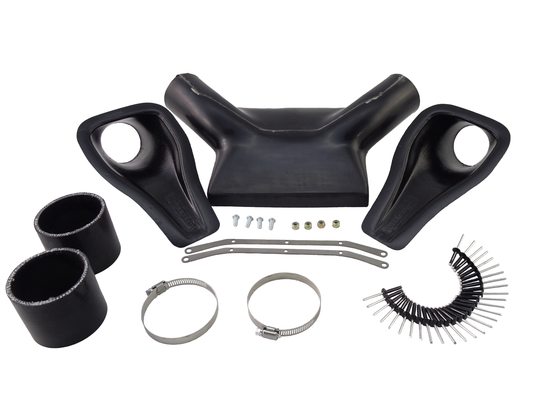 This kit will duct fresh air to the heat exchanger under the battery box. It includes a fiberglass shroud, shroud mounts, silicone splices, NACA ducts and mounting hardware.
