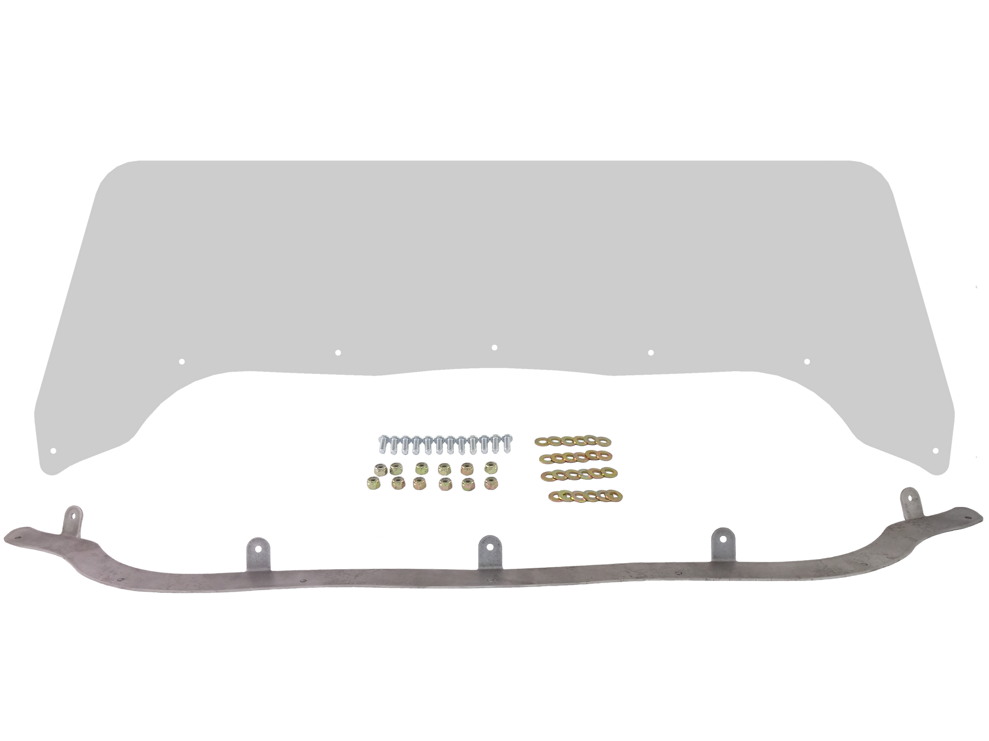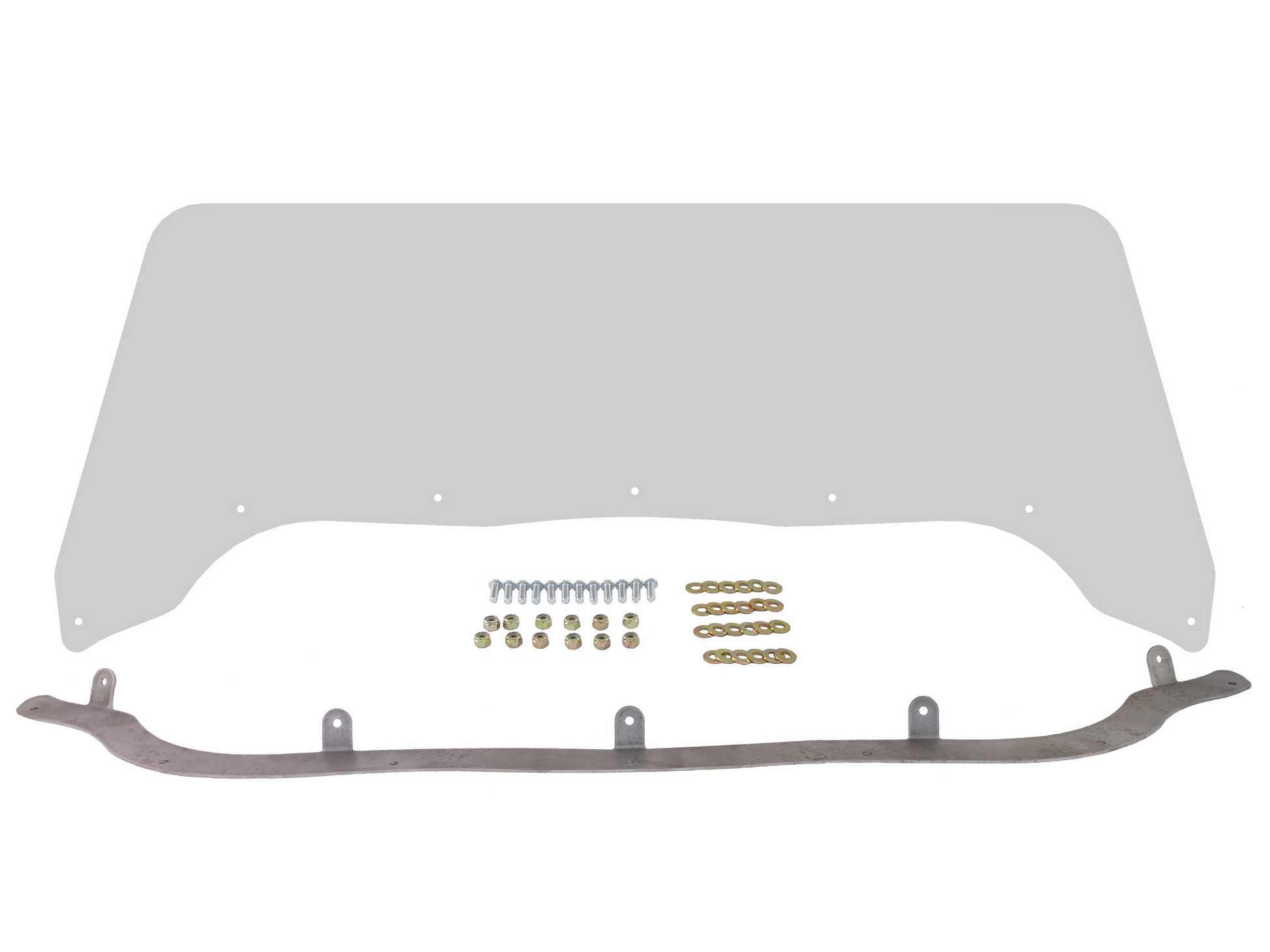 The Goblin windscreen kit includes the polycarbonate windscreen, steel bracket, and windscreen hardware pack.